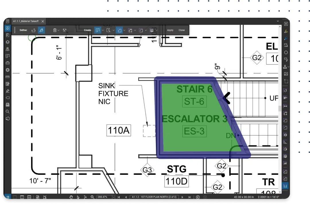 Accurate measurement tools: Perform linear, area, and volume takeoffs directly from PDFs.