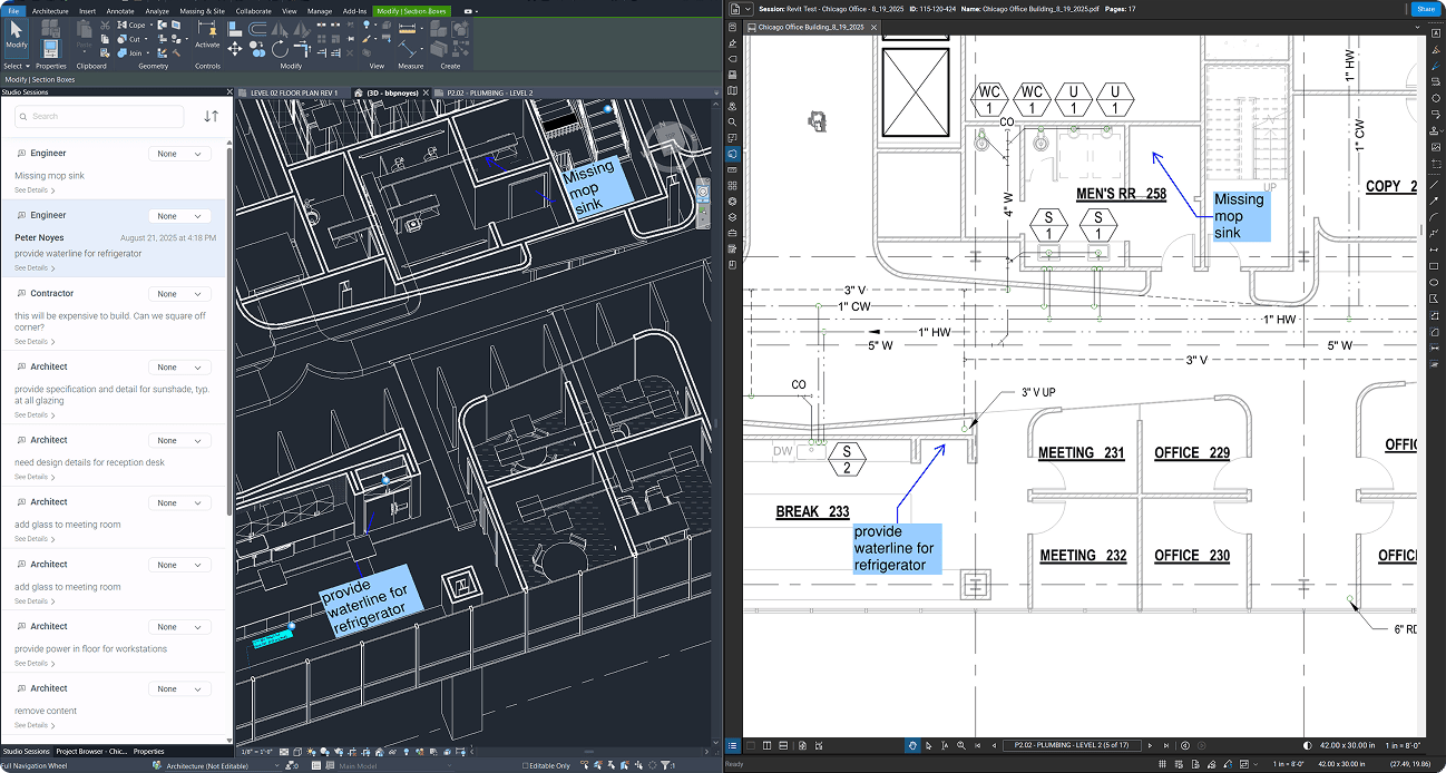 Connect Studio Sessions to Revit — your 2D Bluebeam markups will automatically link to the correct spot in 3D Revit.