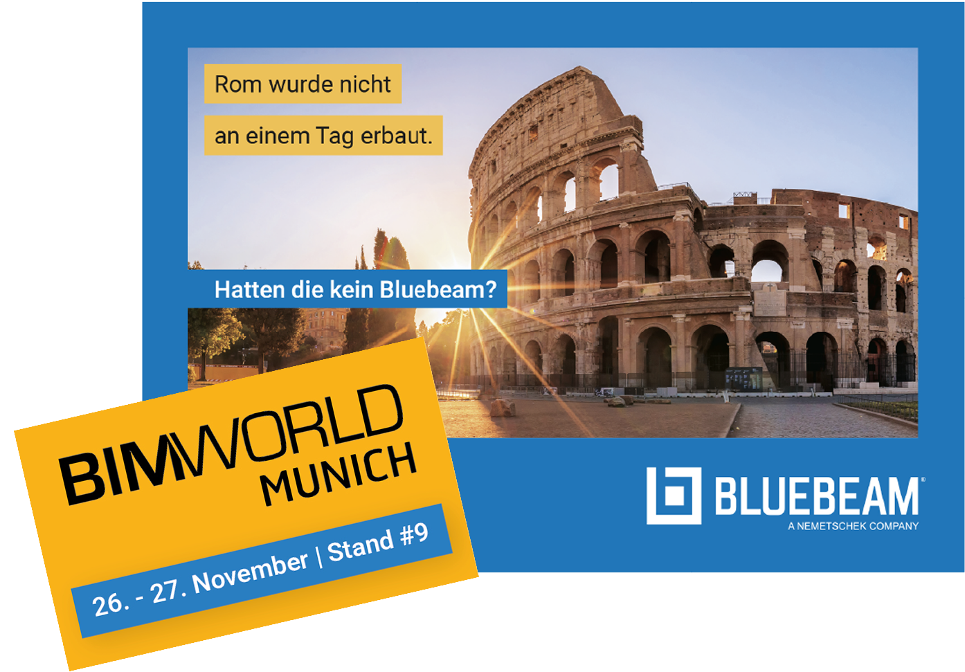 Treffen Sie uns am Gemeinschaftsstand der Nemetschek-Group im ICM, Stand Nr. 9. Wir zeigen Ihnen gerne, wie einfach sich Ihre Bauprozesse mit Bluebeam planen, koordinieren und kontrollieren lassen. Oder nutzen Sie die Chance, und tauchen Sie in einem unserer VortrÀge noch tiefer ein.
