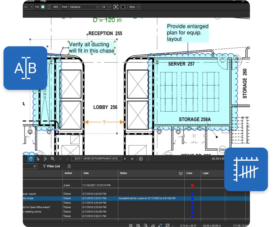 Accelera le revisioni e riduci il lavoro di rielaborazione invitando i team a rivedere, annotare, modificare e aggiornare i documenti contemporaneamente, senza dover prima installare Revu.