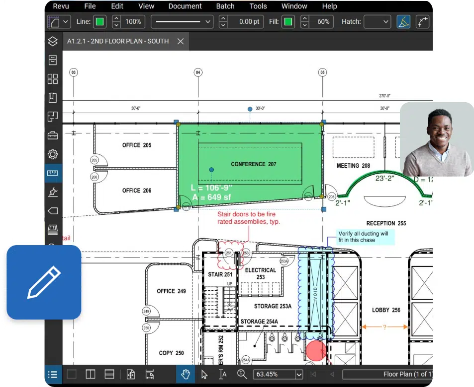 Accelera le revisioni e riduci il lavoro di rielaborazione invitando i team a rivedere, annotare, modificare e aggiornare i documenti contemporaneamente, senza dover prima installare Revu.