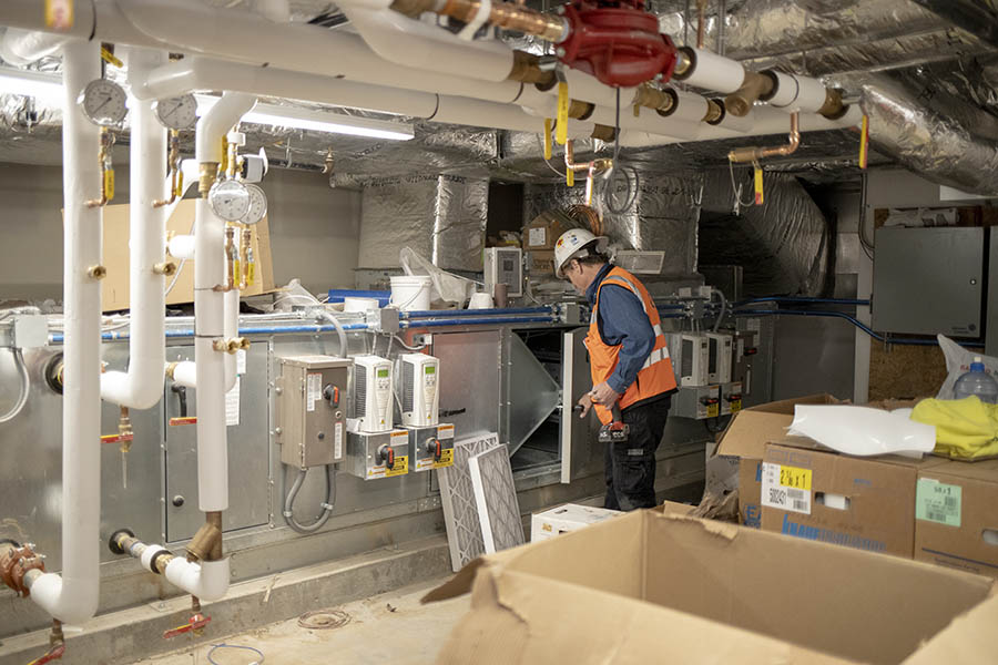 Når estimater og ingeniørarbeid i prosjektet er ferdig, blir informasjonen liggende inne i Revu, slik at gjennomgang av tegninger kan skje i sanntid inne i Studio for alle avdelinger, inkludert felten, for ytterligere prioriterte markeringer og godkjenninger. «Vi gjør tegningene helt ferdige, helt ned til rørbeskrivelser med koblingstype, destinasjon, størrelse og spesifikasjoner. Alt dette inngår i tegningene, bekreftes av bygningsarbeiderne og sendes ut til verkstedet», sier Goduti. All produksjon og testing gjøres inne på verkstedet på CCIs campus, og derfra sendes utstyr og deler ut til byggeplassene. Tegningene arkiveres og brukes også som veiledning for bygningsarbeiderne ute på byggeplassen.