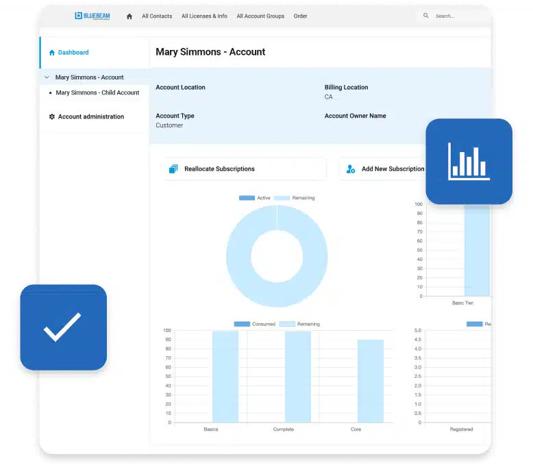 Vi gjør det enkelt for organisasjoner å administrere, distribuere og standardisere Bluebeam-bruk på tvers av team.