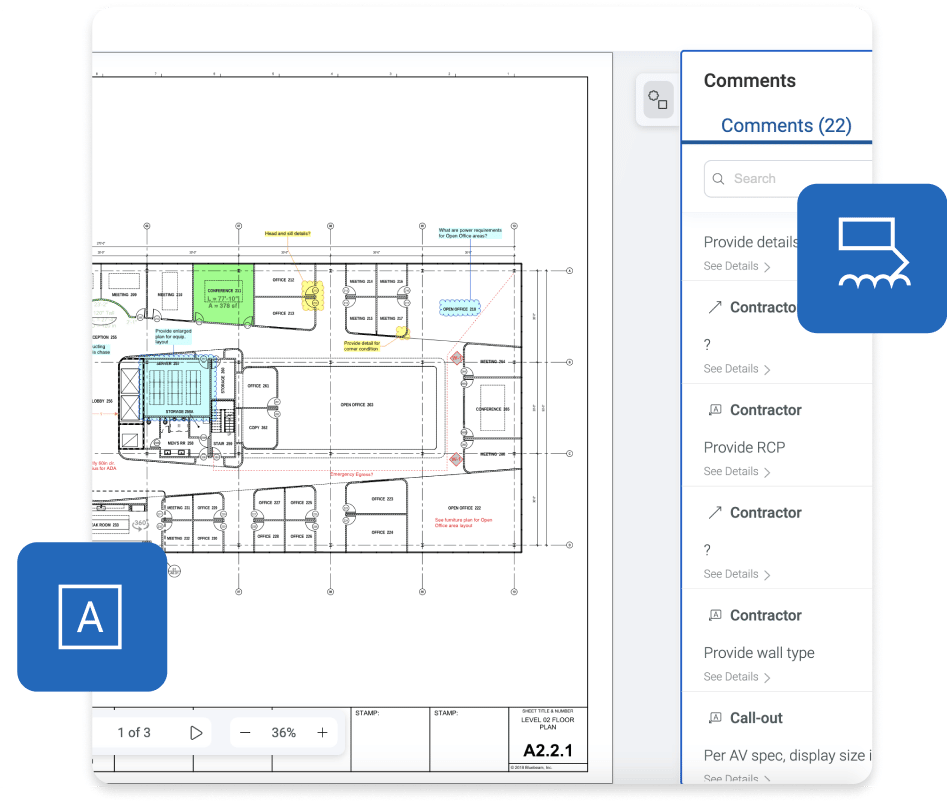 Bluebeam offers intuitive tools that facilitate collaboration and consistency for moving a construction project from estimating to the field. When team members have real-time access to the same information, the process is streamlined, resulting in fewer delays and improved productivity.