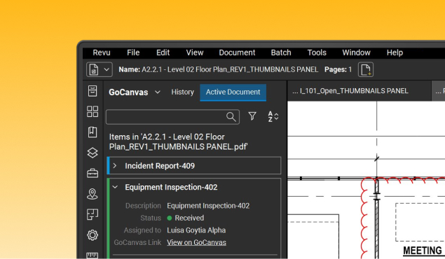 Assign tasks to field teams and track their progress in real time from your markups with Task Link, a powerful new integration between Bluebeam Revu and GoCanvas.
